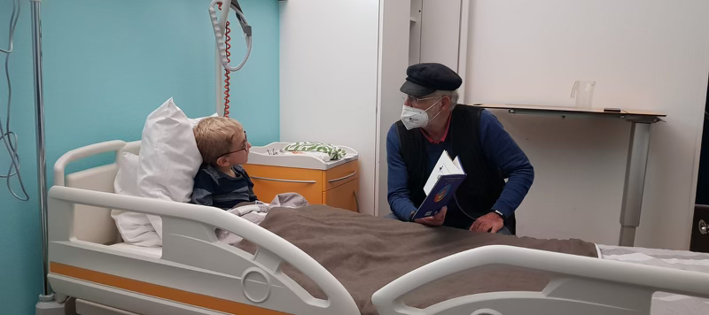 La tombée de la nuit marque généralement la fin des visites, un moment particulièrement angoissant pour les enfants, et c’est à ce moment que nos bénévoles Conteurs du Soir interviennent. Leur rôle consiste à apporter un réconfort, en venant faire la lecture de contes.